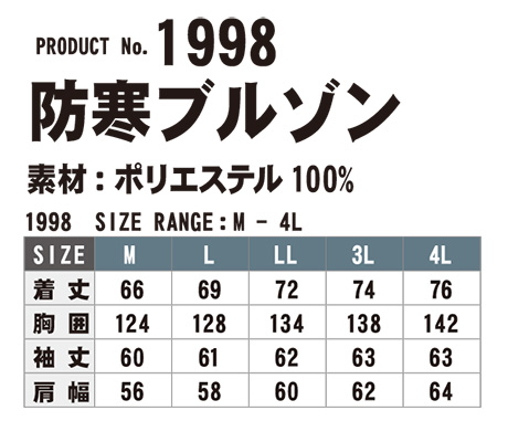 SHINMEN(シンメン株式会社) 秋・冬シーズン 作業服 1998/防寒ブルゾン