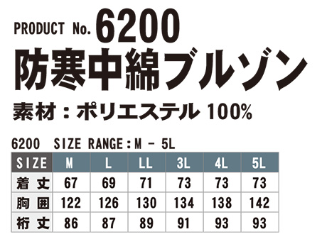 SHINMEN(シンメン株式会社) 秋・冬シーズン 作業服 6200/防寒中綿ブルゾン