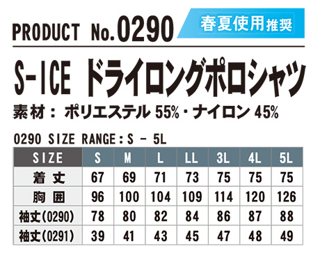 0290/S-ICE ドライロングポロシャツ |