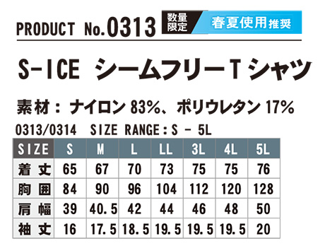 0313/S-ICE シームフリーTシャツ |