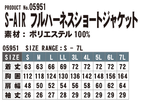 05951/S-AIR フルハーネスショートジャケット |