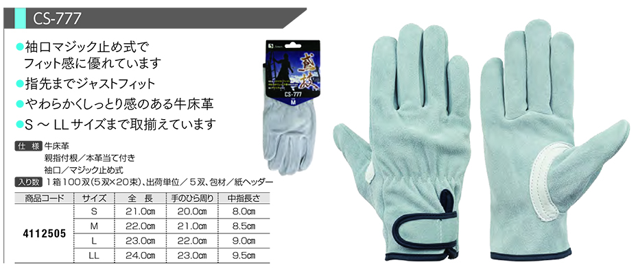 牛床革 背縫い、親指付根/牛本革当付 |