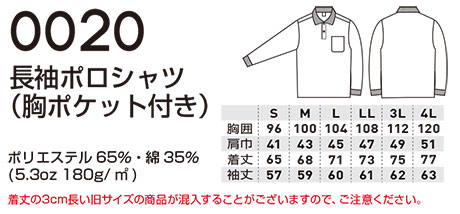 0020/長袖ポロシャツ(胸ポケット付き) |