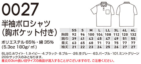0027/半袖ポロシャツ(胸ポケット付き) |