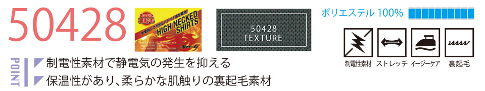 50428/長袖ハイネックシャツ(胸ポケット付き)