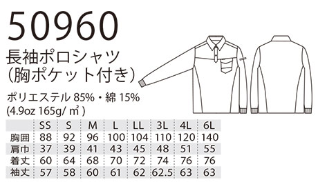 50960/長袖ポロシャツ(胸ポケット付き) |