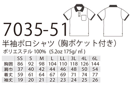 7035-51/半袖ポロシャツ(胸ポケット付き)