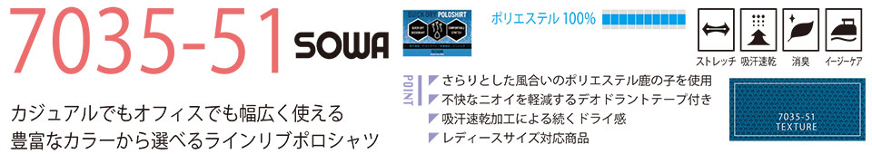 【桑和】 SOWA オールシーズン作業服(ワークウェア) CASUAL 7035-51/半袖ポロシャツ