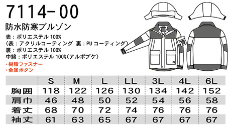 7114-00/防水防寒ブルゾン |