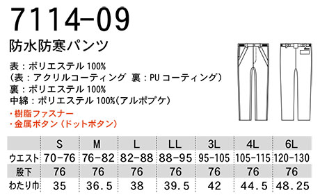 7114-09/防水防寒パンツ |