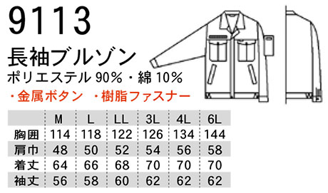 9113/長袖ブルゾン |