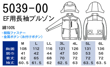 【桑和】 SOWA 春・夏作業服(ワークウェア) EF(空調)用ウェア 5039-00/EF用長袖ブルゾン
