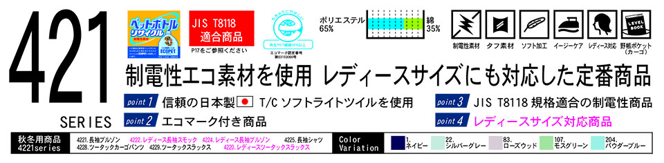ポリエステル65%・綿35% (エコ素材) |