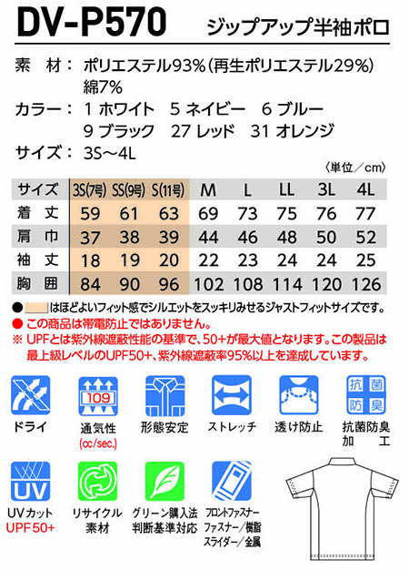 | DV-P570/ジップアップ半袖ポロ |