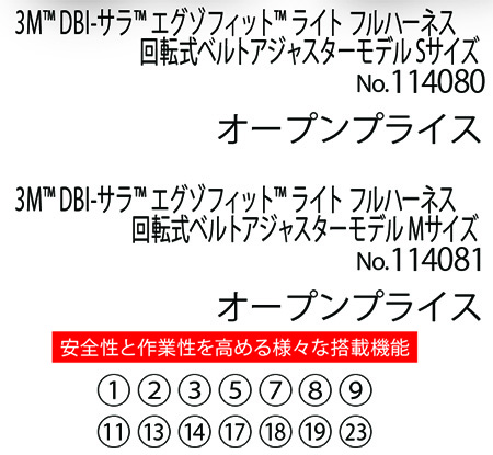 3MTMDBI-サラTMエグゾフィットTMライトフルハーネス固定式ベルトアジャスターモデル