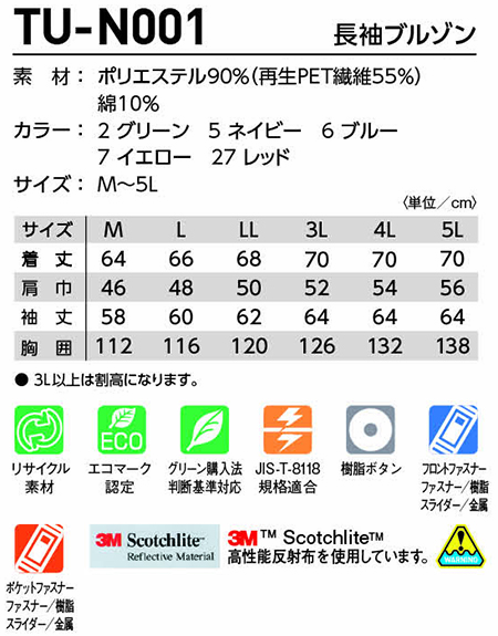 | TU-N001/長袖ブルゾン |
