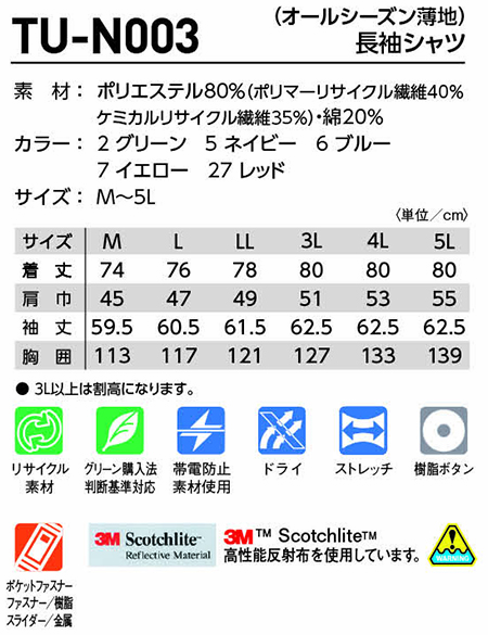 | TU-N003/長袖シャツ(オールシーズン薄地) |