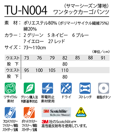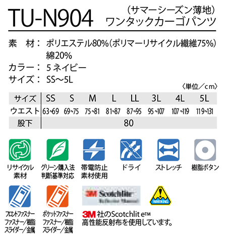| TU-N904/ワンタックカーゴパンツ(サマーシーズン薄地) |