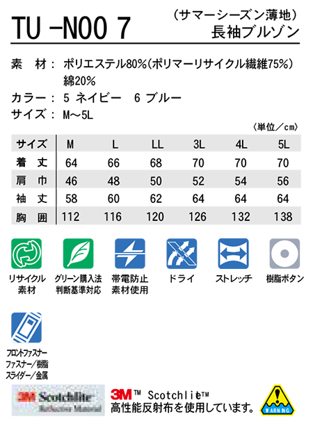 | TU-N007/長袖ブルゾン(サマーシーズン薄地) |