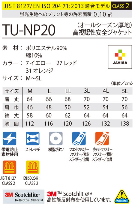 | TU-NP20/高視認性安全ジャケット(オールシーズン厚地) |
