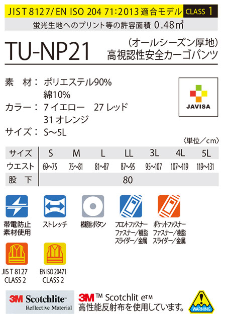 | TU-NP21/高視認性安全カーゴパンツ(オールシーズン厚地) |