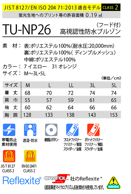 | TU-NP26/高視認性防水ブルゾン(フード付) |