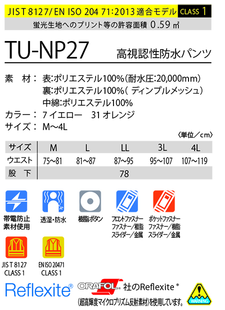 | TU-NP27/高視認性防水パンツ |