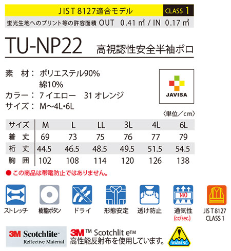 TU-NP22/高視認性安全半袖ポロ