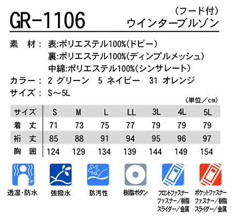 | GR-1106/ウインターブルゾン(フード付) |