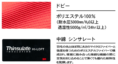 中綿:ポリエステル100%(シンサレート) |