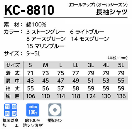 | KC-8810/長袖シャツ(ロールアップ)(オールシーズン) |