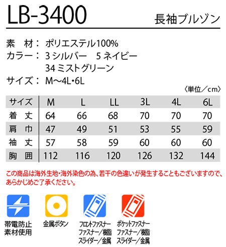 | LB-3400/長袖ブルゾン |