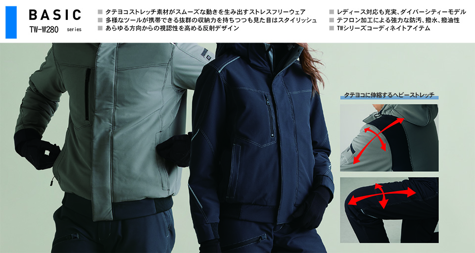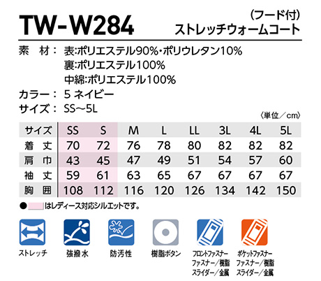 | TW-W280/ストレッチウォームブルゾン(フード付) |