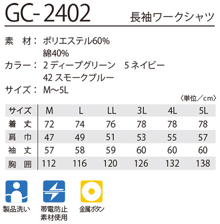 | GC-2402/長袖ワークシャツ |