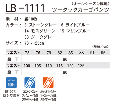 | LB-1111/ツータックカーゴパンツ(オールシーズン薄地) |