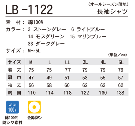 | LB-1122/長袖シャツ(オールシーズン薄地) |