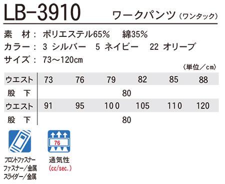 | LB-3910/ワークパンツ(ワンタック) |