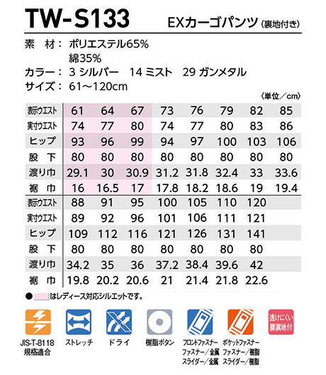 | TW-S133/EXカーゴパンツ(裏地付き) |