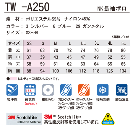 | TW-A250/NK長袖ポロ |