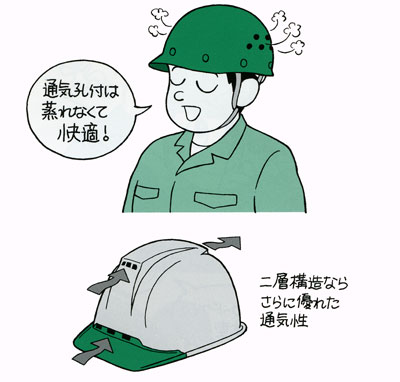 ヘルメット内部の蒸れを少なくしてくれます。二層構造タイプなら、さらに優れた通気性を得られます。