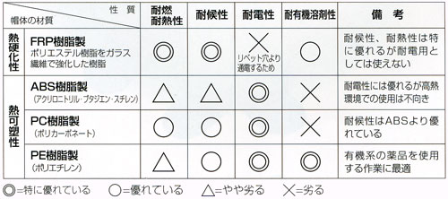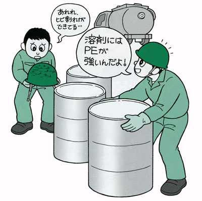 有機溶剤に弱い材質があります。使用環境に応じて材質を選ぶことが大切です。