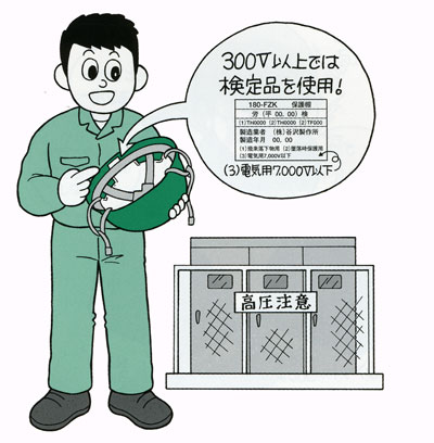 交流300V(直流では750V)以上の高電圧の活線に接触するおそれがあるときは、電気用の規格に合格したものを選びましょう。
