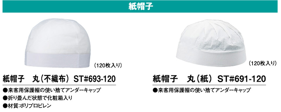 紙帽子 丸(不織布) ST#693-120 (120枚入り) |