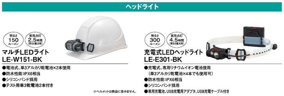 :充電式LEDヘッドライト LE-E301-BK |