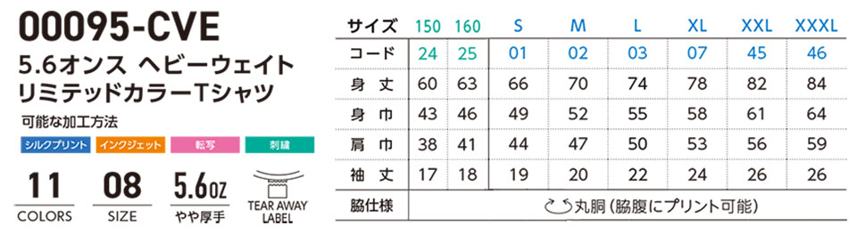 00095-CVE/5.6オンス ヘビーウェイトリミテッドカラーTシャツ
