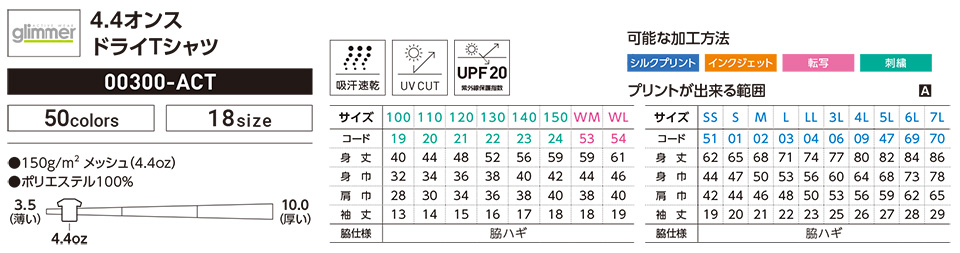 4.4オンス ドライTシャツ |