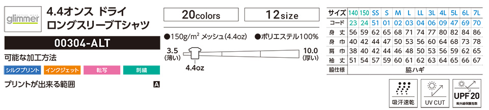 00304-ALT/4.4オンス ドライロングスリーブTシャツ
