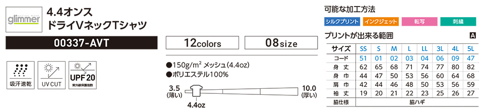 衣料百貨大槻 プリントウェア トムス株式会社(プリントスター) 00337-AVT 4.4オンス ドライVネックTシャツ