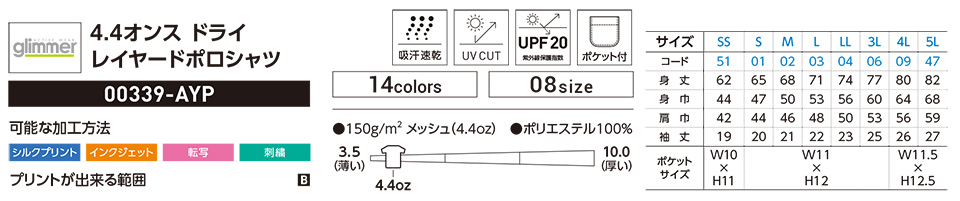 衣料百貨大槻 プリントウェア トムス株式会社(プリントスター) 00339-AYP 4.4オンス ドライレイヤードポロシャツ