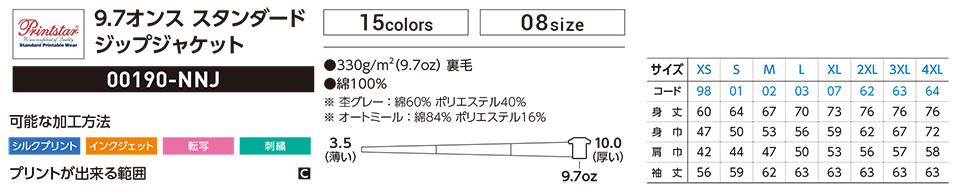 00190-NNJ/9.7オンス スタンダードジップジャケット(生産終了商品)